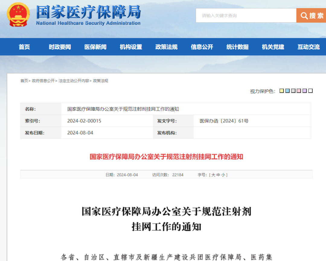 国家医保局发文简化注射剂挂网形式 促进注射剂挂网价更加均衡透明