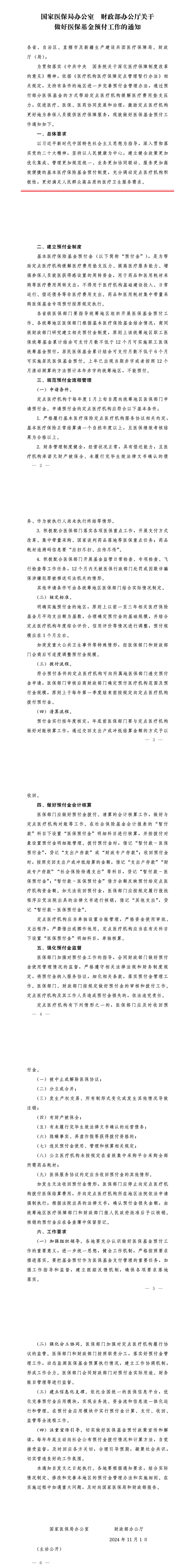 近日,国家医保局办公室、财政部办公厅印发了《关于做好医保基金预付工作的通知》(医保办函〔2024〕101号,以下简称《通知》)。现对有关内容解读如下:《通知》坚持以人民为中心的发展思想,坚持稳中求进的工作总基调,抓住重点,主动作为,将做好医保基金预付工作作为医保增量政策之一,在国家层面统一和完善基本医疗保险基金预付制度,规范流程,强化管理,有效提高资金使用效率。坚持将“预付金”作为“赋能金”,让定点医疗机构缓解医疗费用垫支压力,切实为定点医疗机构可持续发展赋能助力,进而为参保群众提供更优质的医疗保障,促进药品和耗材企业稳健运行,一体推动“三医”协同发展和治理,从而更好服务保障宏观经济发展大局,为社会平稳运行贡献力量。《通知》从政策制度安排、申请流程、会计核算和监督等方面明确了规范要求,主要体现“三个明确”和“三个规范”。各地要根据《通知》要求,结合实际情况制定、修改和完善本地区的预付金管理办法和实施细则。“三个明确”是指:一是明确政策内涵。预付金是医保部门预付给定点医疗机构用于药品和医用耗材采购等医疗费用的周转资金,不得用于医疗机构基础建设投入、日常运行、偿还债务等非医疗费用支出。药品和医用耗材集中带量采购医保基金专项预付按原规定执行。二是明确拨付条件。基金安全是实施预付工作的基本前提,应坚持尽力而为、量力而行的原则。原则上按照统筹地区医保统筹基金累计结余和医保基金运行风险等级作为拨付预付金的条件和标准。三是明确支出标准。核定标准原则上以前一至三年相关医疗保险基金月平均支出额为基数,合理确定预付金的基础规模,预付规模应在1个月左右。“三个规范”是指:一是规范流程管理。符合条件的定点医疗机构于每年度1月上旬自愿向统筹地区医保部门申请预付金。医保部门审核后商财政部门确定预付医疗机构范围及预付金规模,原则上于每年第一季度结束前按规定向定点医疗机构拨付预付金。预付金实行按年度核定,年底前医保部门要与定点医疗机构做好对账核算工作,通过交回支出户或冲抵结算金额的方式予以收回。二是规范会计核算。医保部门和定点医疗机构应定期做好医保预付金对账工作,医保部门应做好预付金拨付、清算、核销的会计核算工作。定点医疗机构除按要求做好会计核算外,还应当单独设置台账管理,严格资金使用审批、支出程序,严禁借出或挪作他用。三是规范资金监督。医保部门要将医保预付金纳入服务协议,细化相关条款。同时,明确医保部门收回预付金的情形,对无法收回的,停止向定点医疗机构拨付医保结算费用并申请进入司法程序,保证医保基金安全。