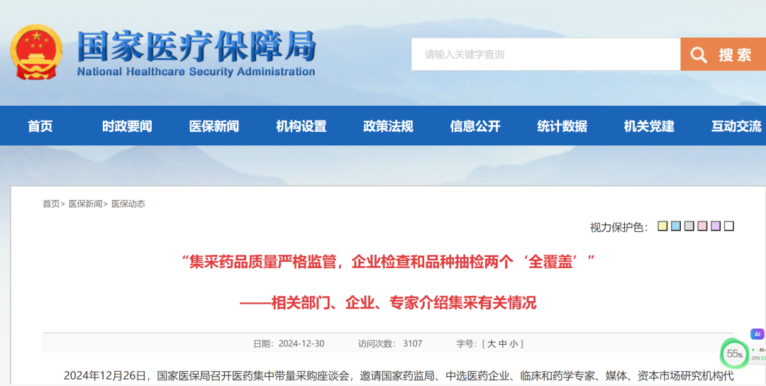 2024年12月26日,国家医保局召开医药集中带量采购座谈会,邀请国家药监局、中选医药企业、临床和药学专家、媒体、资本市场研究机构代表参加,就近期社会关注的集中采购药品质量保障、行业创新发展等问题沟通交流,听取意见建议。国家医保局党组成员、副局长施子海出席会议。座谈会上,齐鲁制药、石药集团、科伦药业、京新药业、倍特药业、甘李药业、蓝帆医疗等企业负责人介绍了参与药品耗材集采情况,并直面舆论关切,重点回应了企业在加强成本控制、保障中选产品质量和供应方面采取的措施。