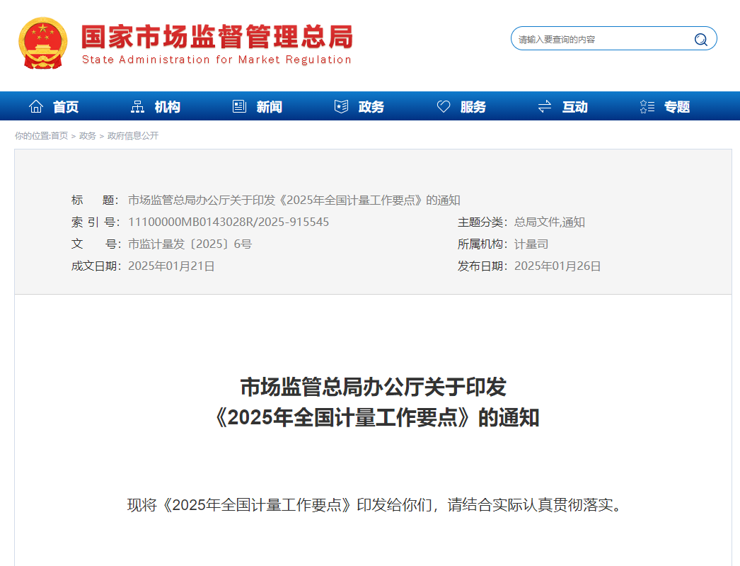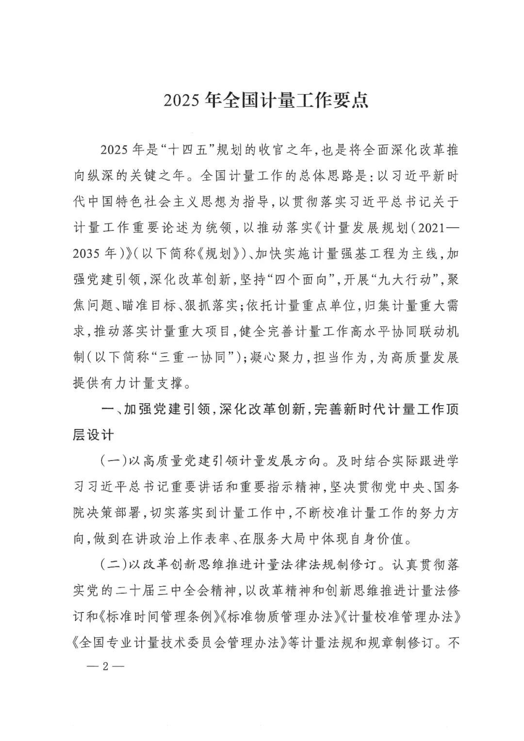 现将《2025年全国计量工作要点》印发给你们,请结合实际认真贯彻落实。